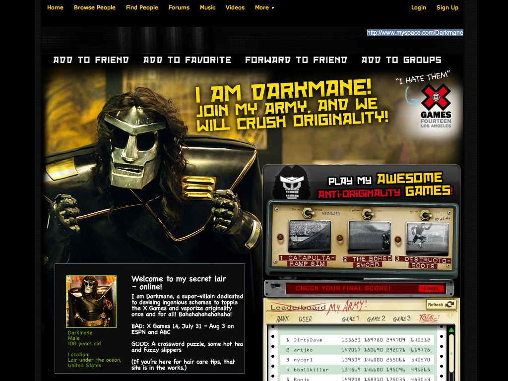 We created the X Games’ arch-nemesis, a low-rent Dr. Doom hell bent on recruiting conformists everywhere to “Foil The X Games.”